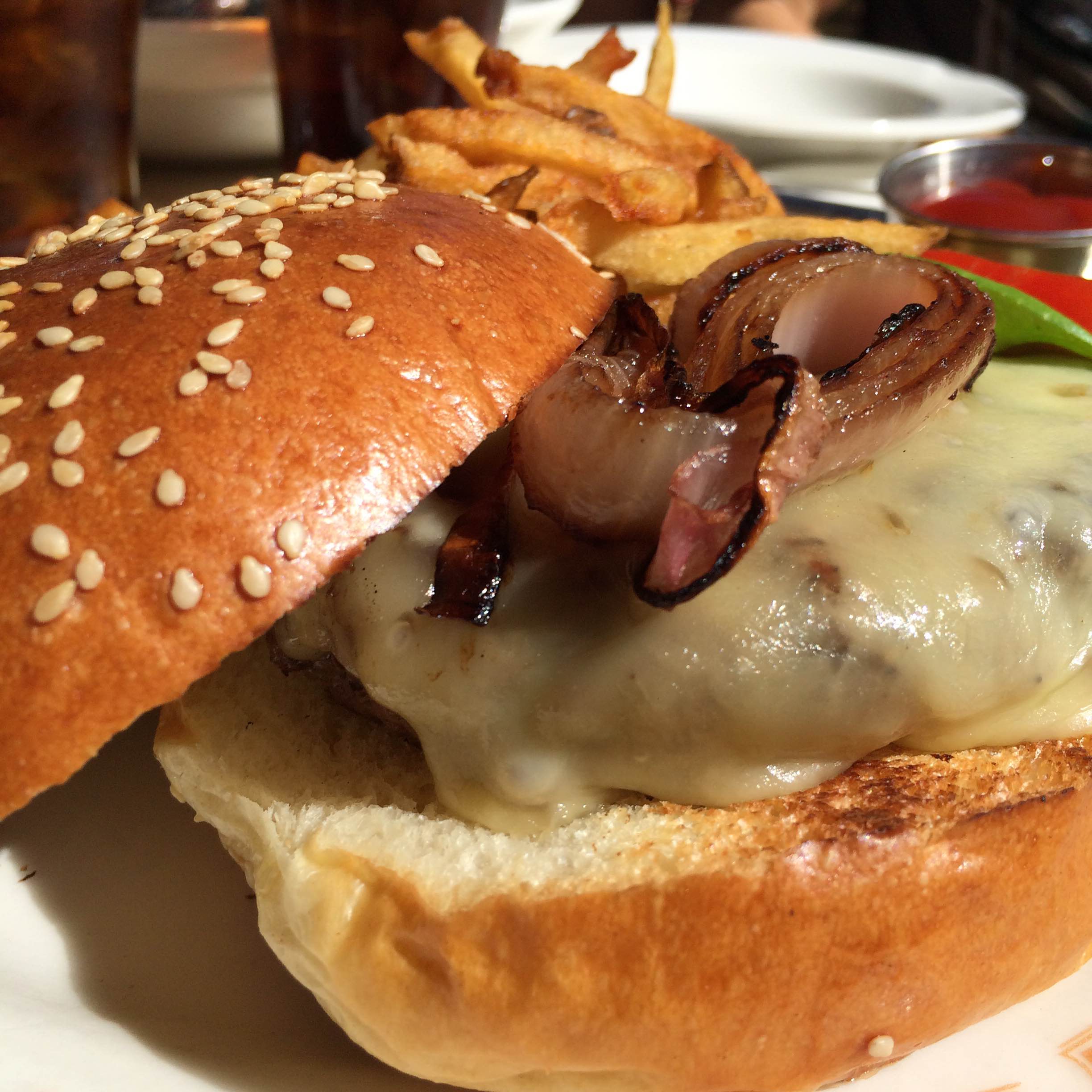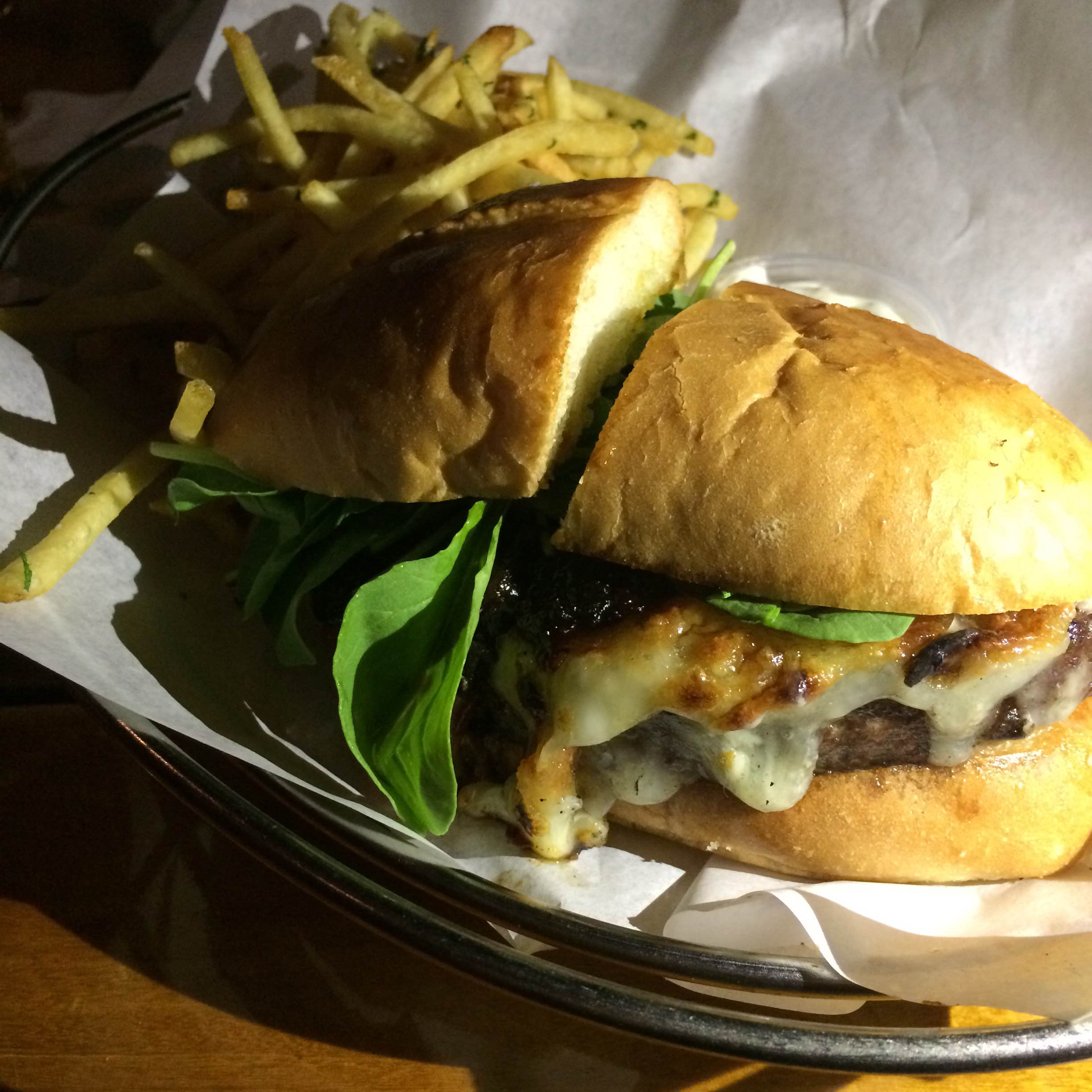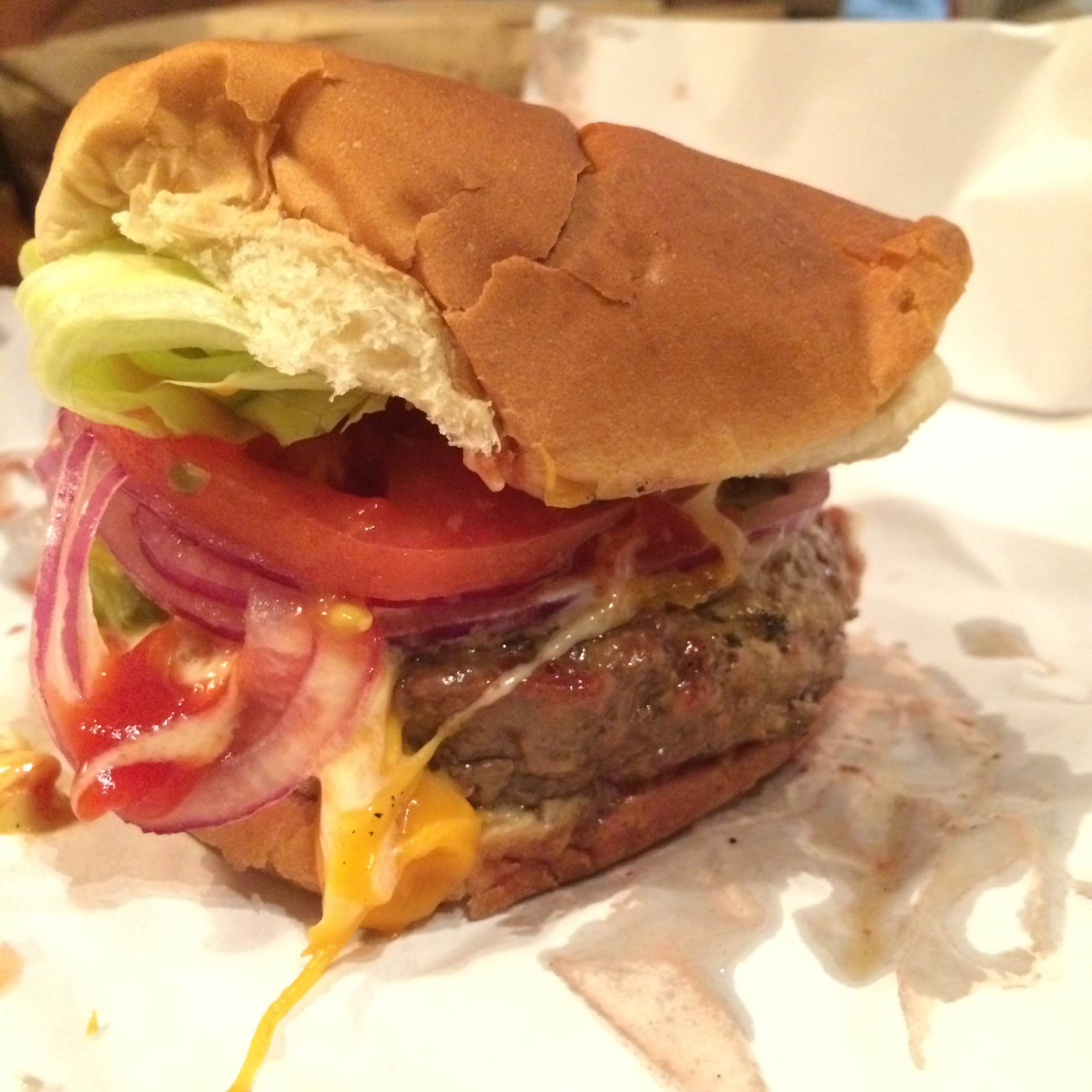 The garnishes were all pleasantly fresh (especially the tomato – swoon), but poorly arranged in the burger. Specifically, the razor-sharp tangle of red onions were placed almost entirely on one side, making that side overwhelmingly, well, zippy. On the other hand, it gave the burger a sort of narrative arc: you start slow with the mellow, sunny burst of tomato, and work your way towards the gregarious, brash onion. That would be cool, if it didn’t feel completely unintentional.