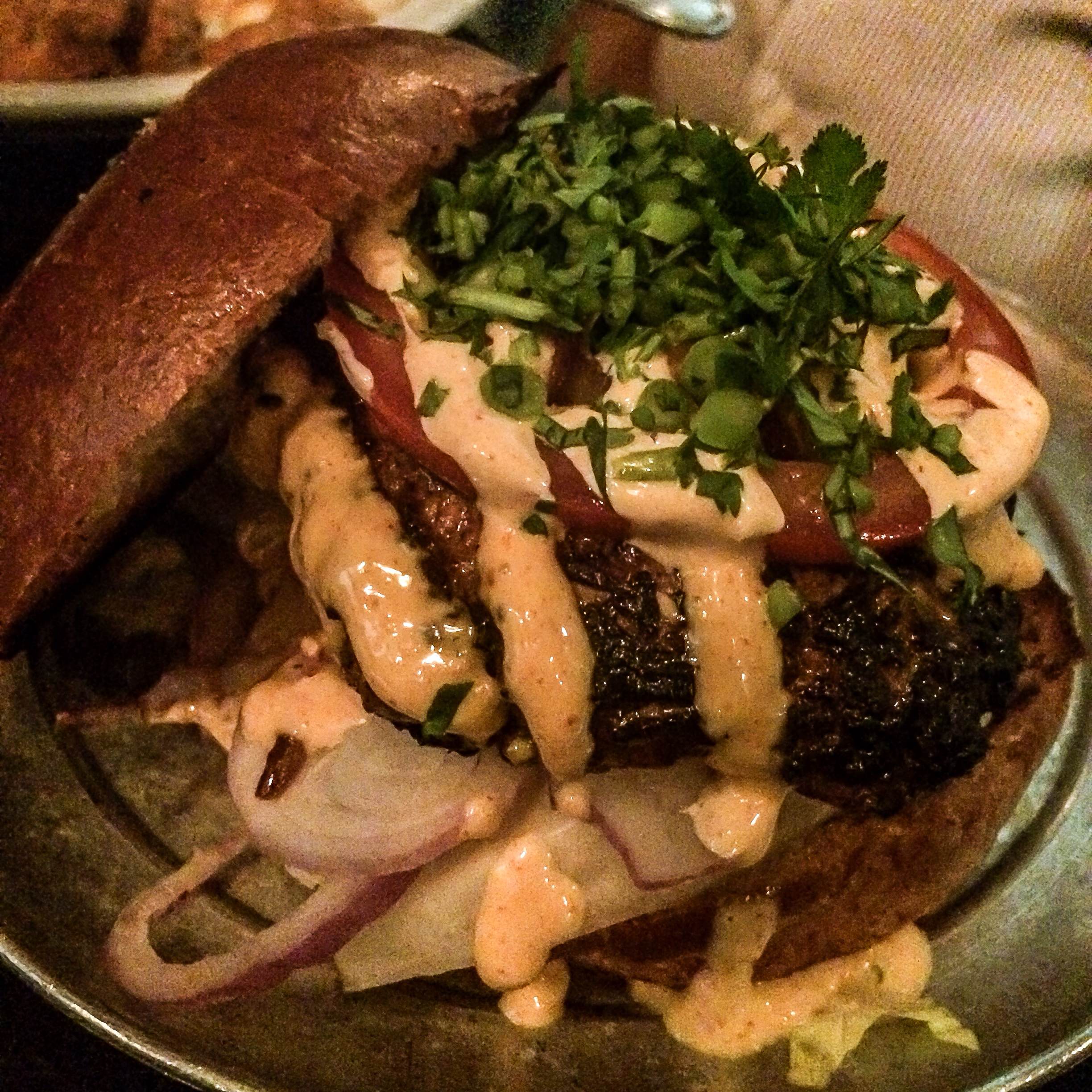 The Downlow Burger consists of two substantial black angus beef patties, fontina cheese, caramelized onions, housemade pickles, and a tomato aioli, all on brioche. Probably the highest praise I can heap on this burger is that it presents like a cousin of Petit Trois. It’s a saucy, paradoxical thing: minimalistic but indulgent, familiar but challenging, understated but brazen. Like Ludo’s masterwork, it eschews typical garnishment in favor of fewer, bolder flavors, assembled purposefully to complement one another.