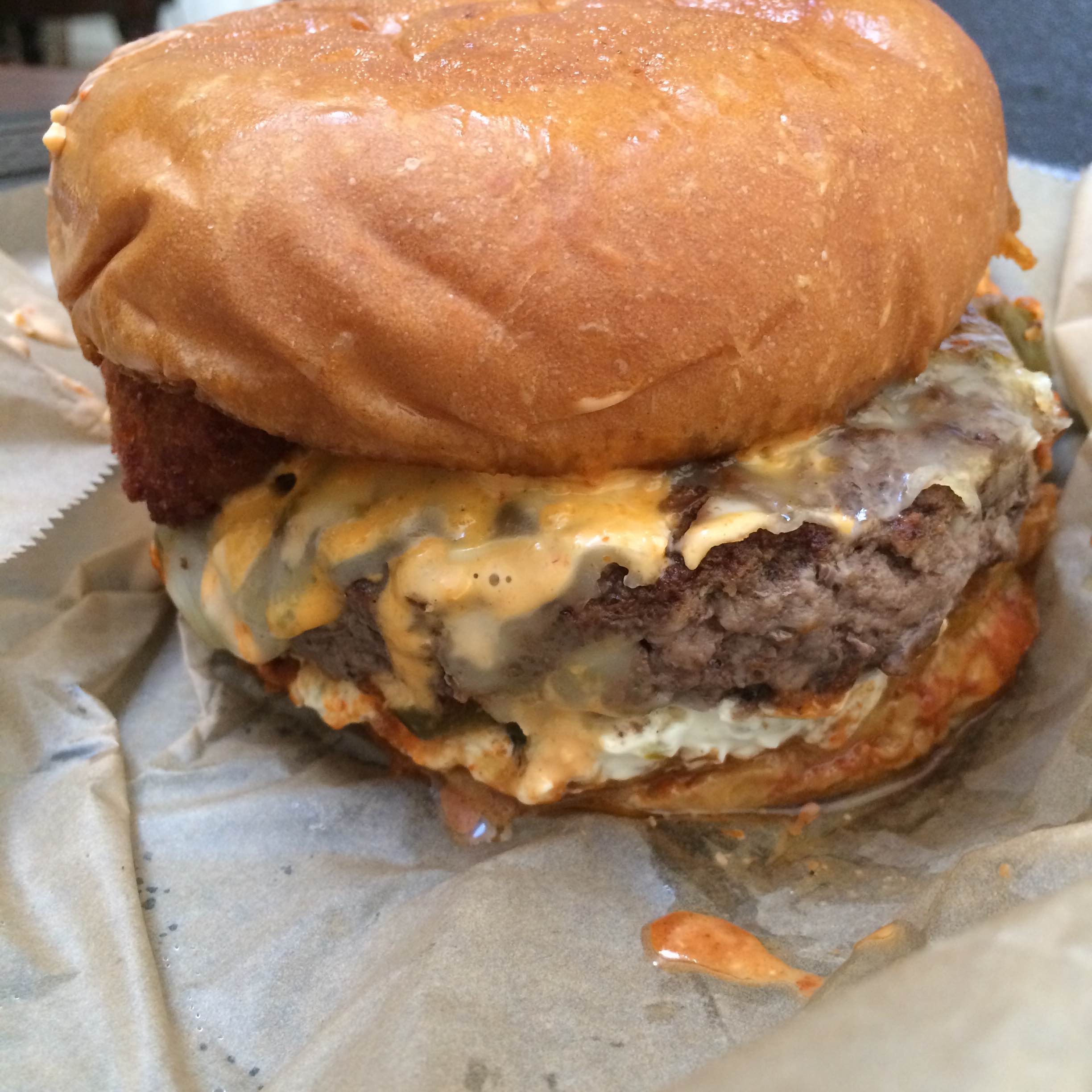 The Order: Napalm Death (half pound patty, pepper jack, pickled jalapeño, cream cheese, habanero aioli, jalapeño poppers)